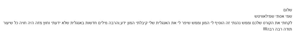 "מרגישה בהחלט שהאנגלית השתפרה עוד יותר!!"